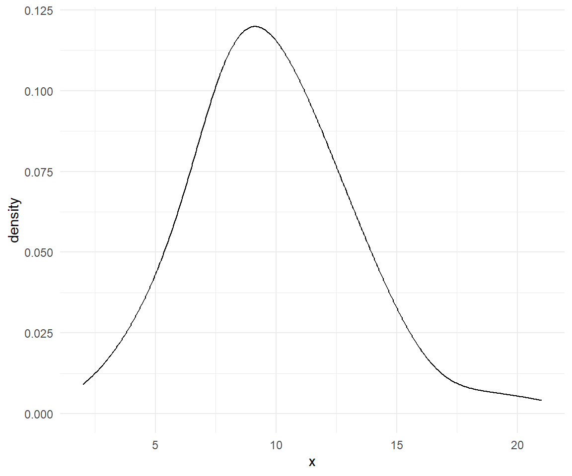Ejemplo: Para una muestra de una población con distribución desconocida: \((1,3,3.3,7,6.5,9)\), estime la densidad usando el kernel gaussiano y \(h=0.5\).