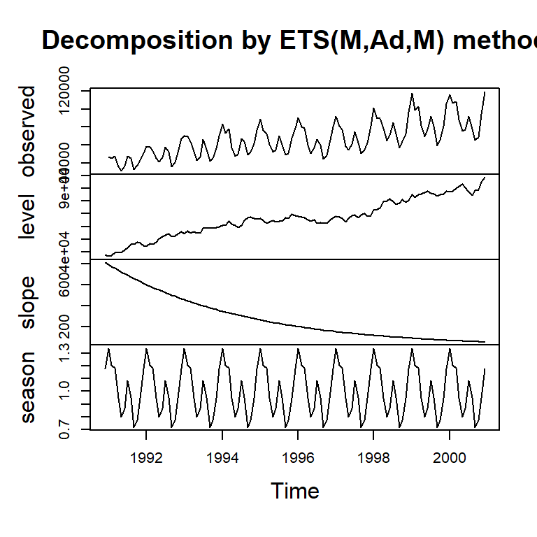 hw_mul<-ets(y,model="MAM",damped = FALSE)