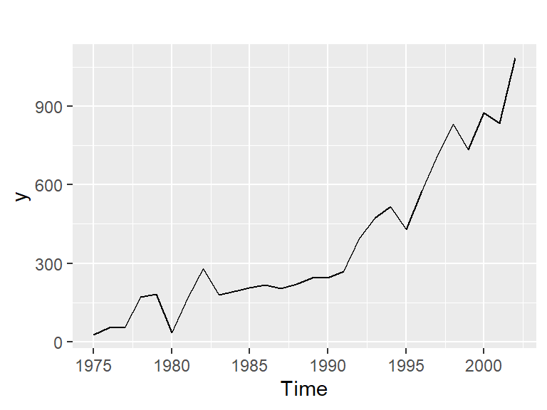 La base de datos “AirPassenger” en R proporciona total de pasajeros mensuales de una aerolínea estadounidense de 1949 a 1960.