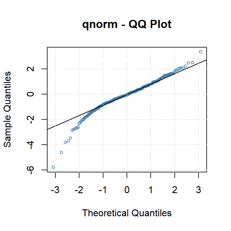 - Note que no existe autocorrelación de los residuales al cuadrado, pero los residuales no son normales.