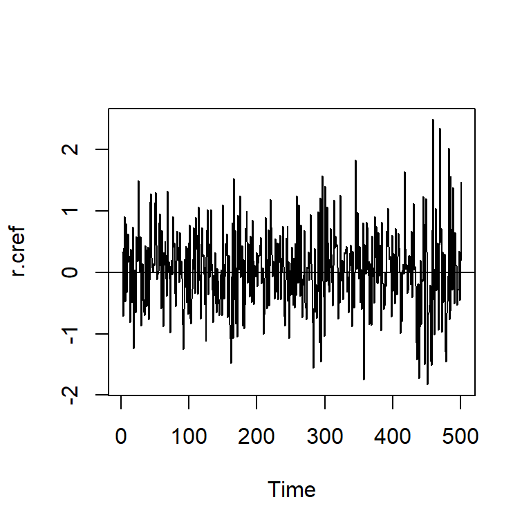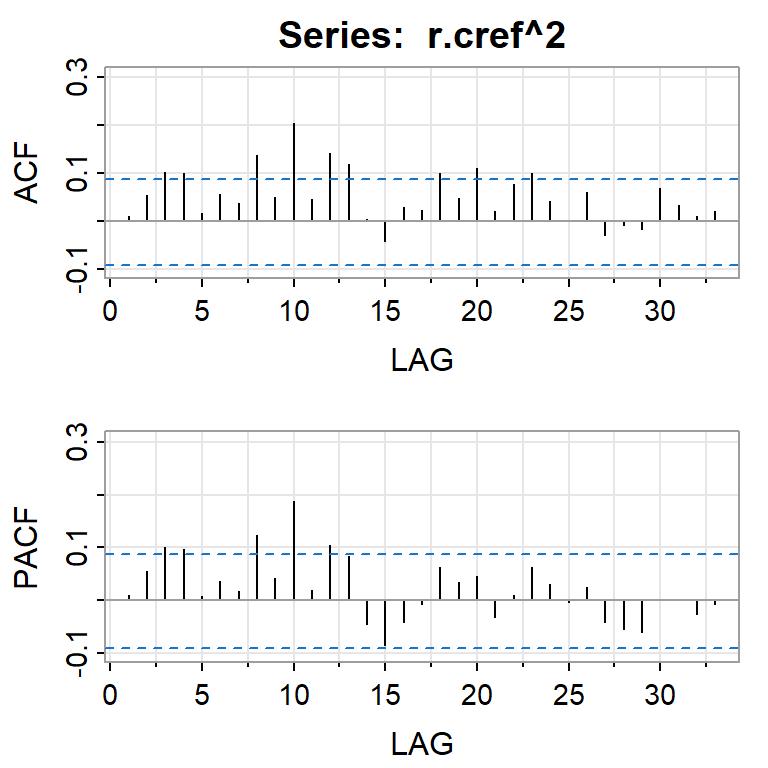 <- garchFit(~garch(1,0), data=r.cref,trace=FALSE)