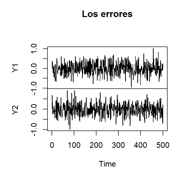 plot(simVAR2_errores, main = "Los errores", col = 1:2)