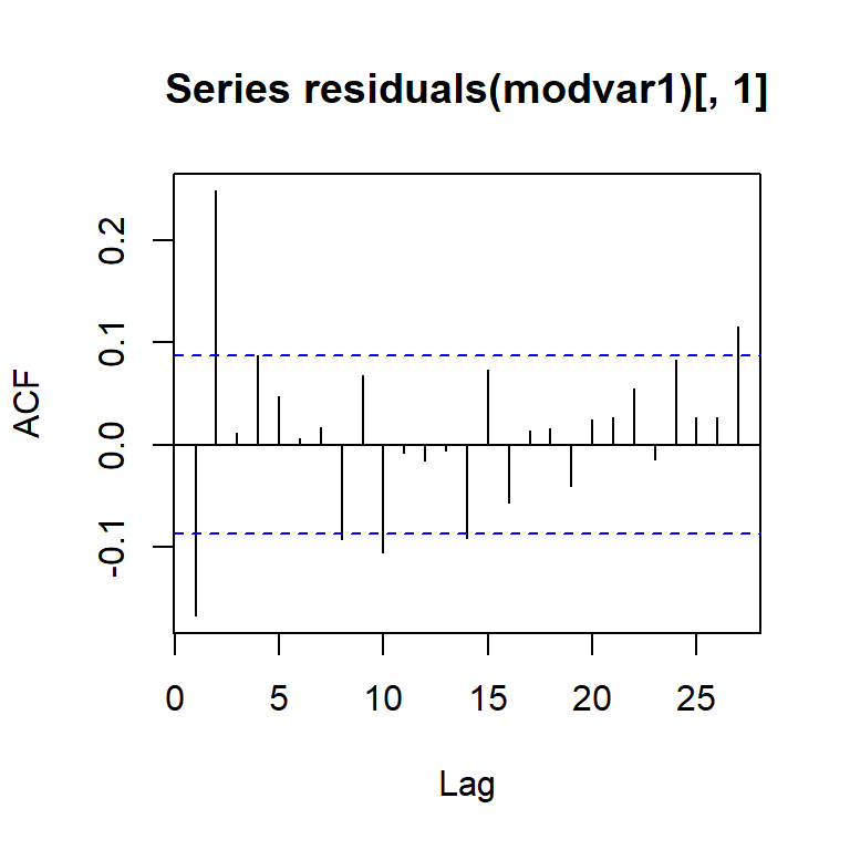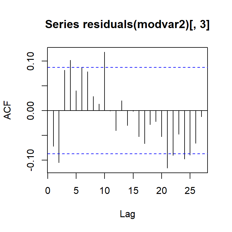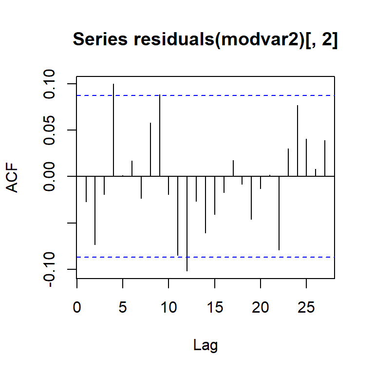 <- MTS::VAR(simVAR2_realizaciones, p = 2) MTSVAR2
