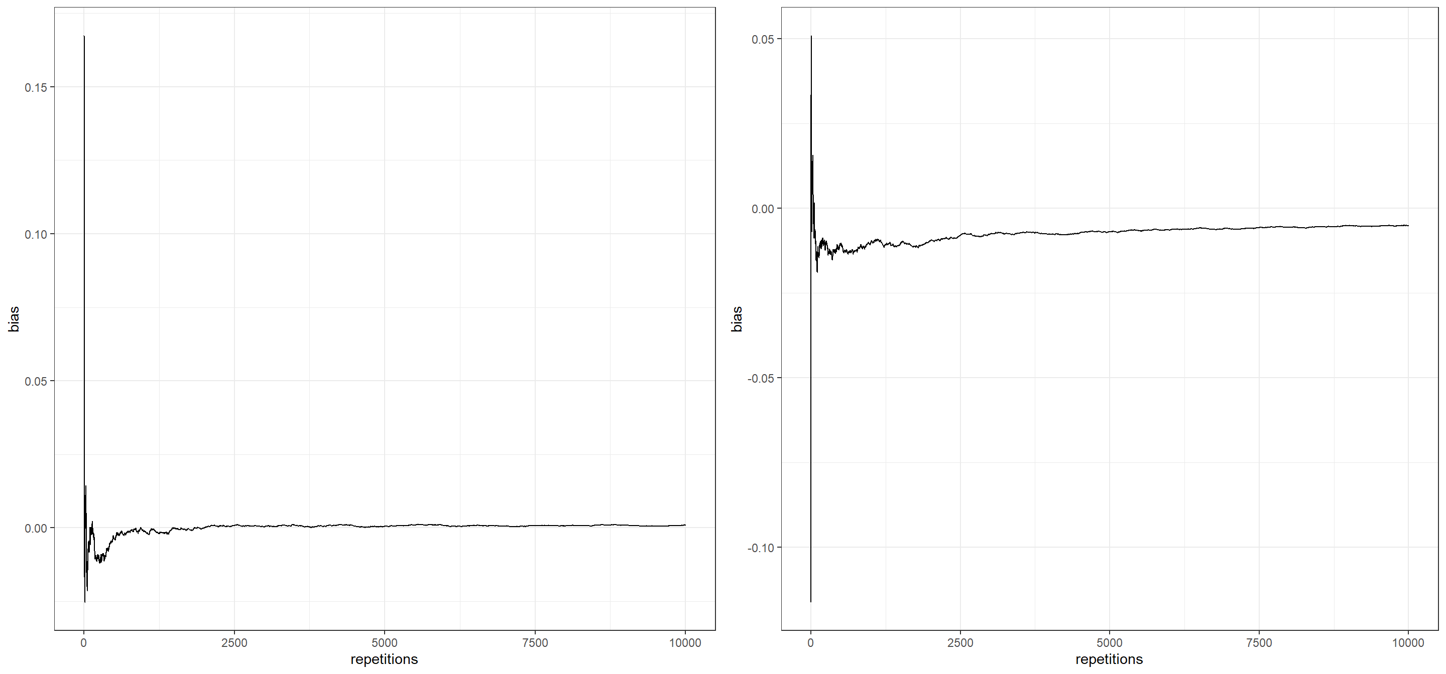 Ejemplo. Determine si los estimadores de los últimos dos ejemplos son asintóticamente insesgados para sus respectivos parámetros.