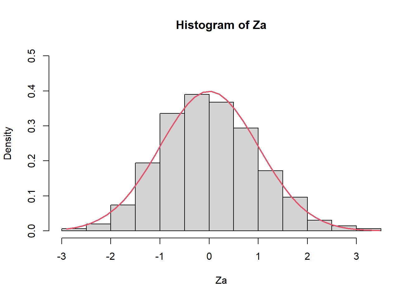 hist(Za,prob=TRUE,ylim=c(0,0.5))