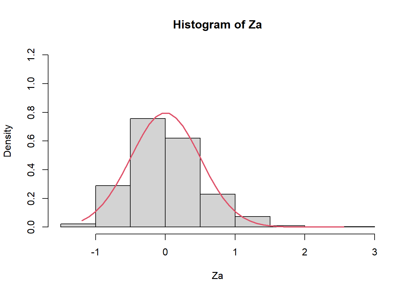 hist(Za,prob=TRUE,ylim=c(0,1.2))