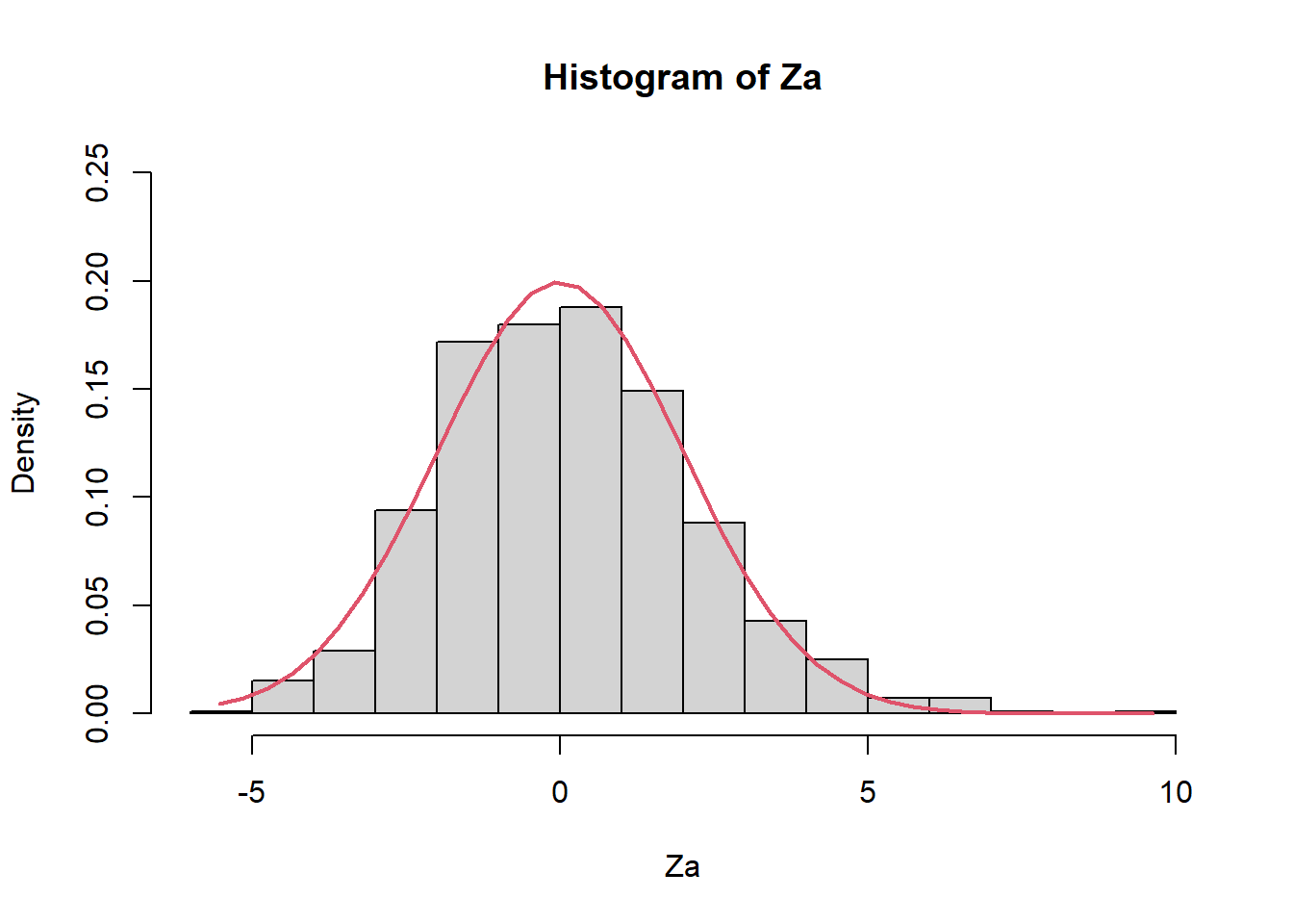 hist(Za,prob=TRUE,ylim=c(0,0.25))